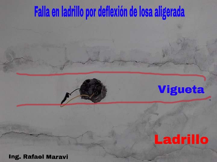 La falla por Deflexión se manifiesta inmediatamente por las grietas en la línea de ladrillos.