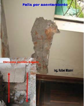 El asentamiento de cimientos corridos fracturan la cimentación llevando la grieta a la estructura.