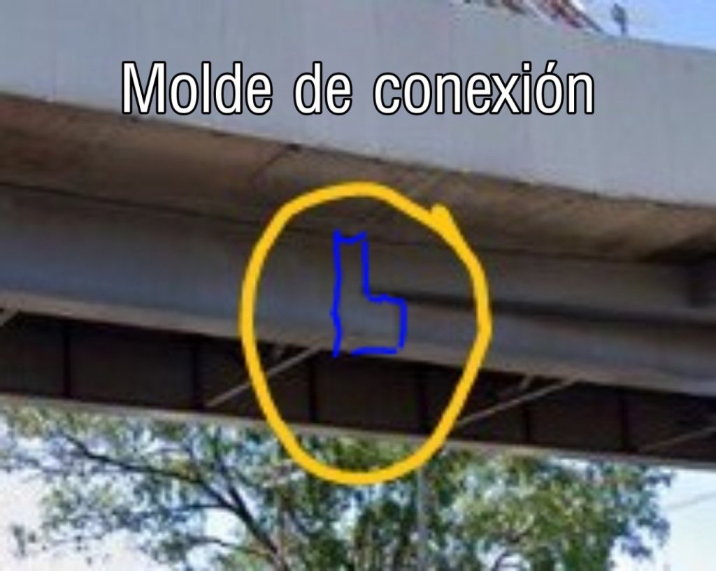 Después de revisar las fotos e imagines del colapso del metro, pude identificar que hay un molde de conexión en el cambio de sección de la viga que al parecer fue tratado con soldadura. No es la forma de hacer una conexión. Es probable que sea el problema por el cuál fallo la estructura.